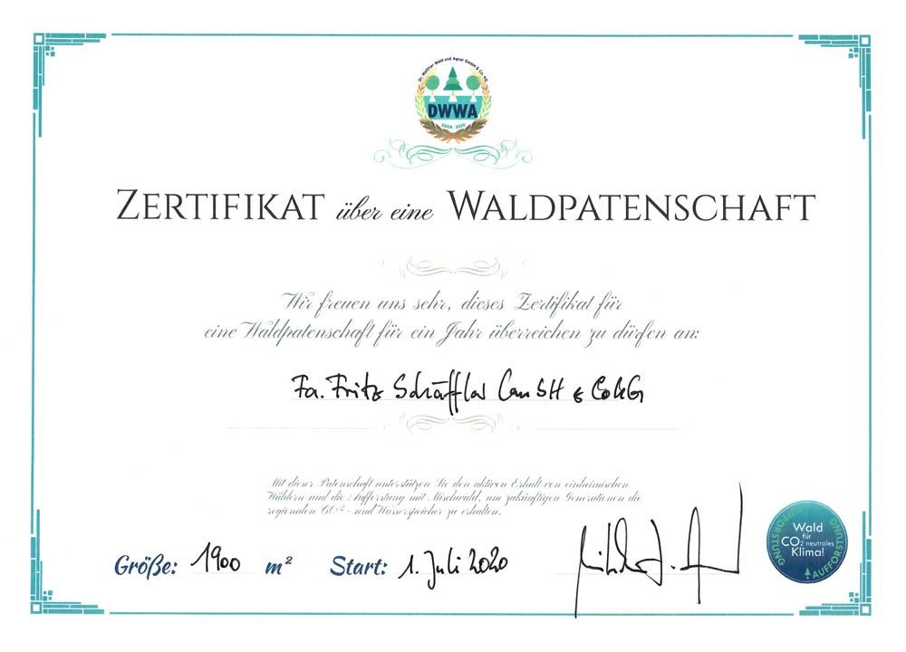 Ab dem 1. Juli 2020 sind wir stolzer Waldpate für 1900 m² heimischen Mischwaldes.